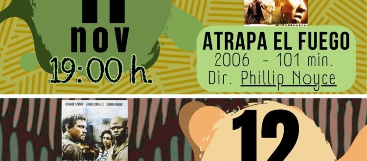 Este ciclo cinematográfico constará de dos películas: Atrapa el fuego, que se proyectará el martes 11 de noviembre a las siete de la tarde, y, Diamante de Sangre, que se exhibirá al día siguiente, el miércoles 12 de noviembre, a las seis y media de la tarde, pues tiene una mayor duración.